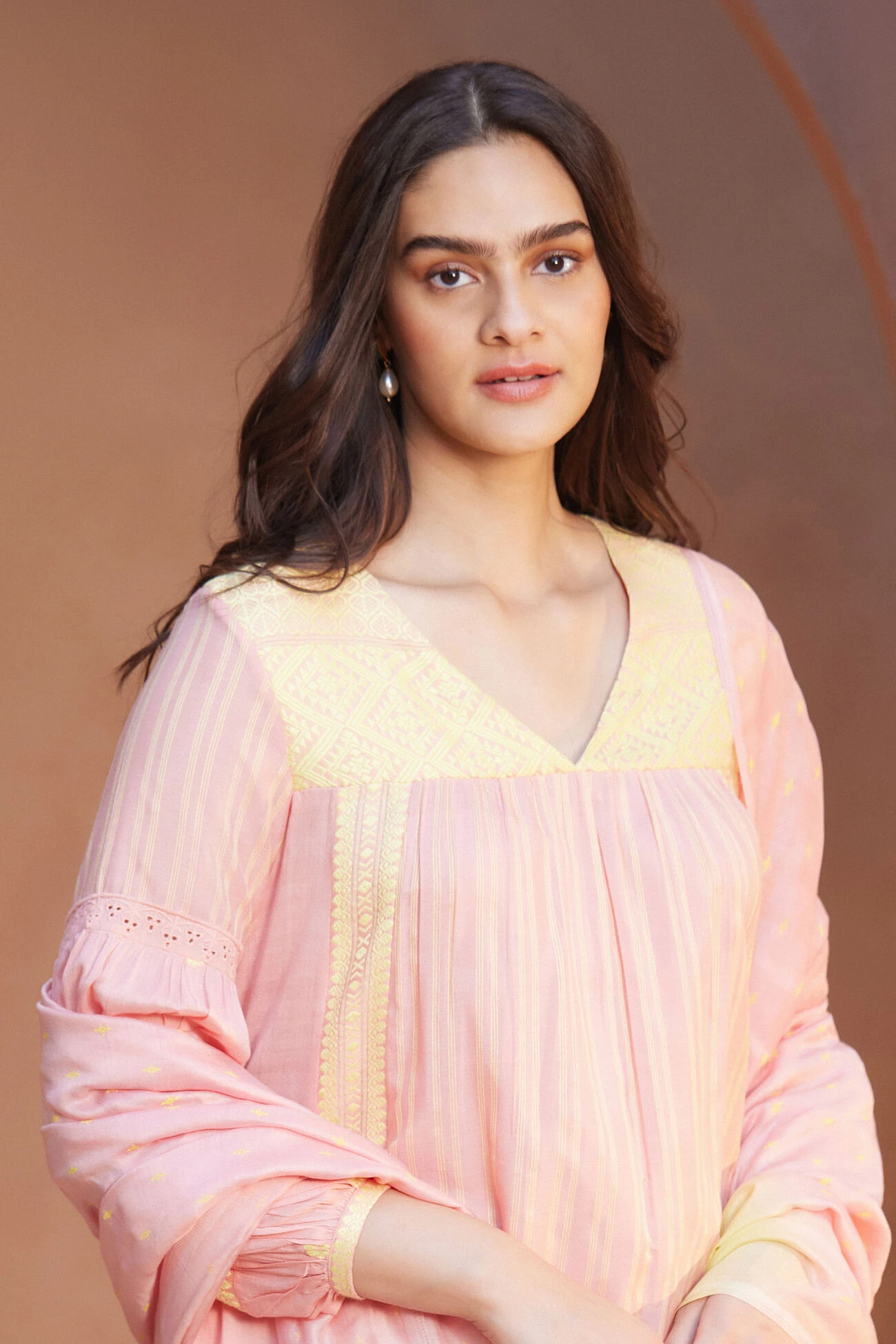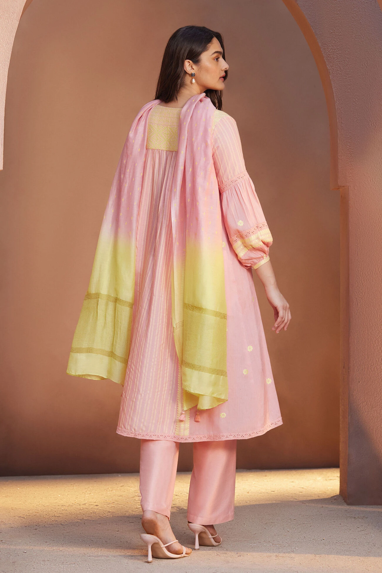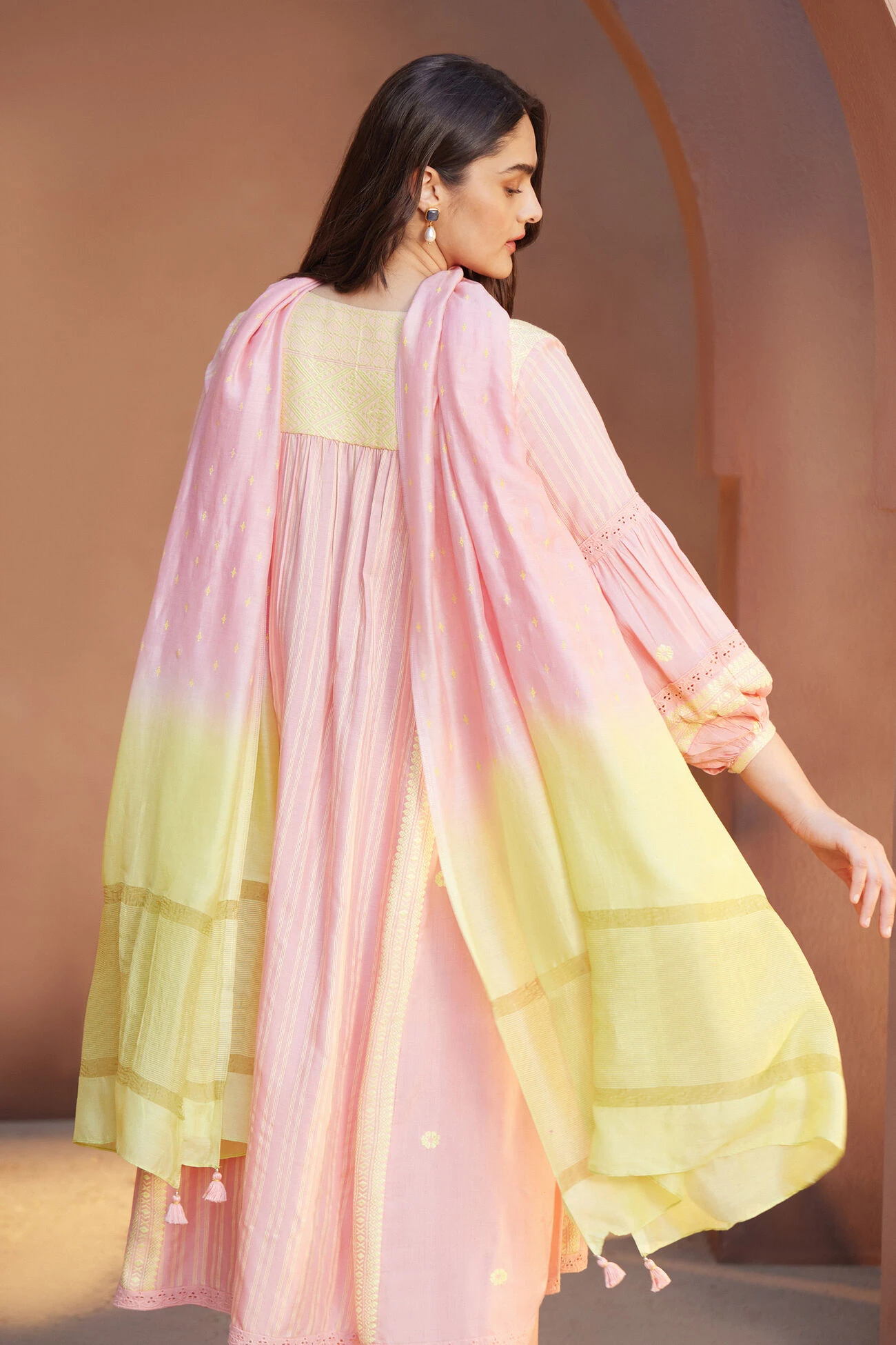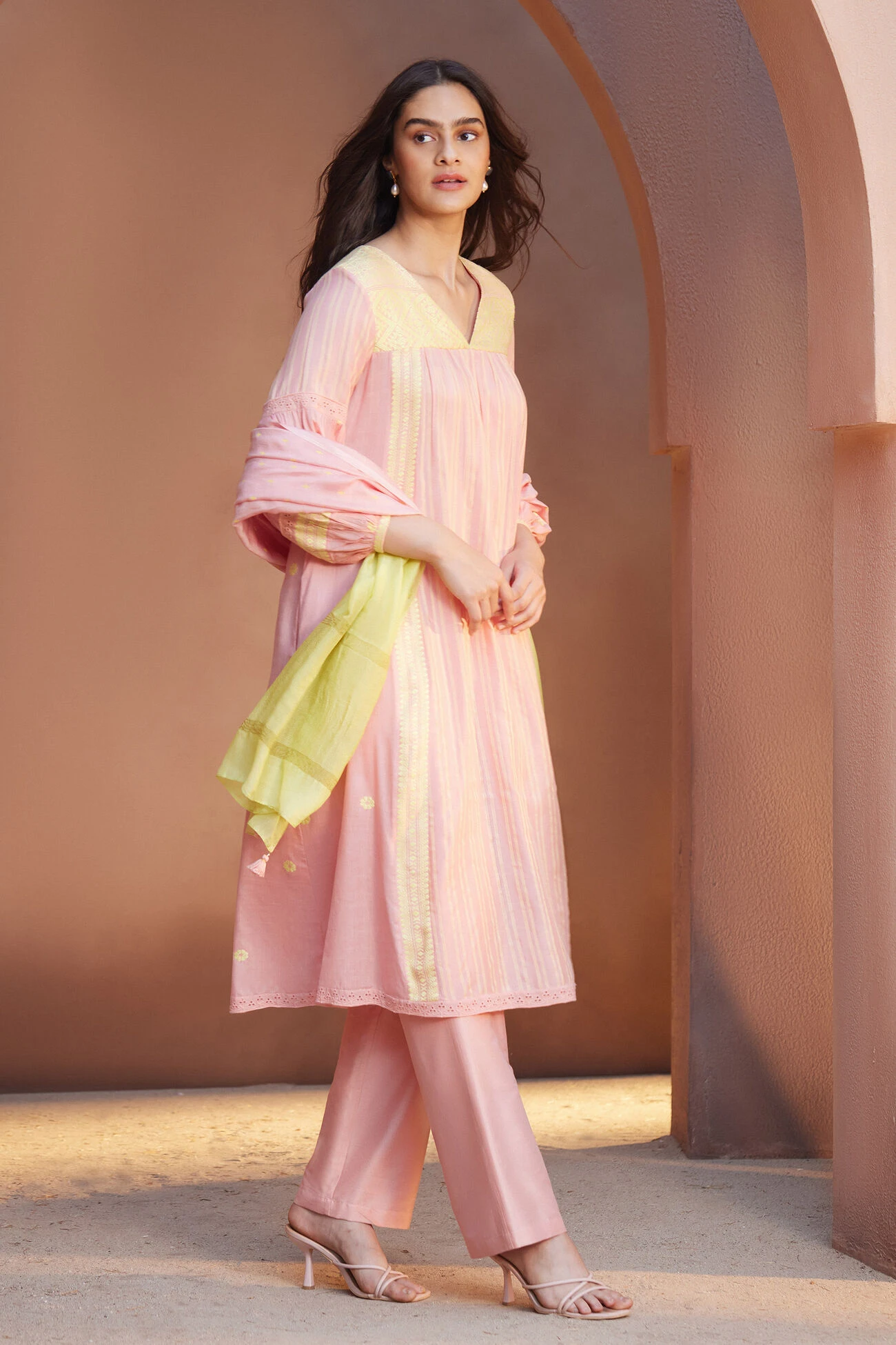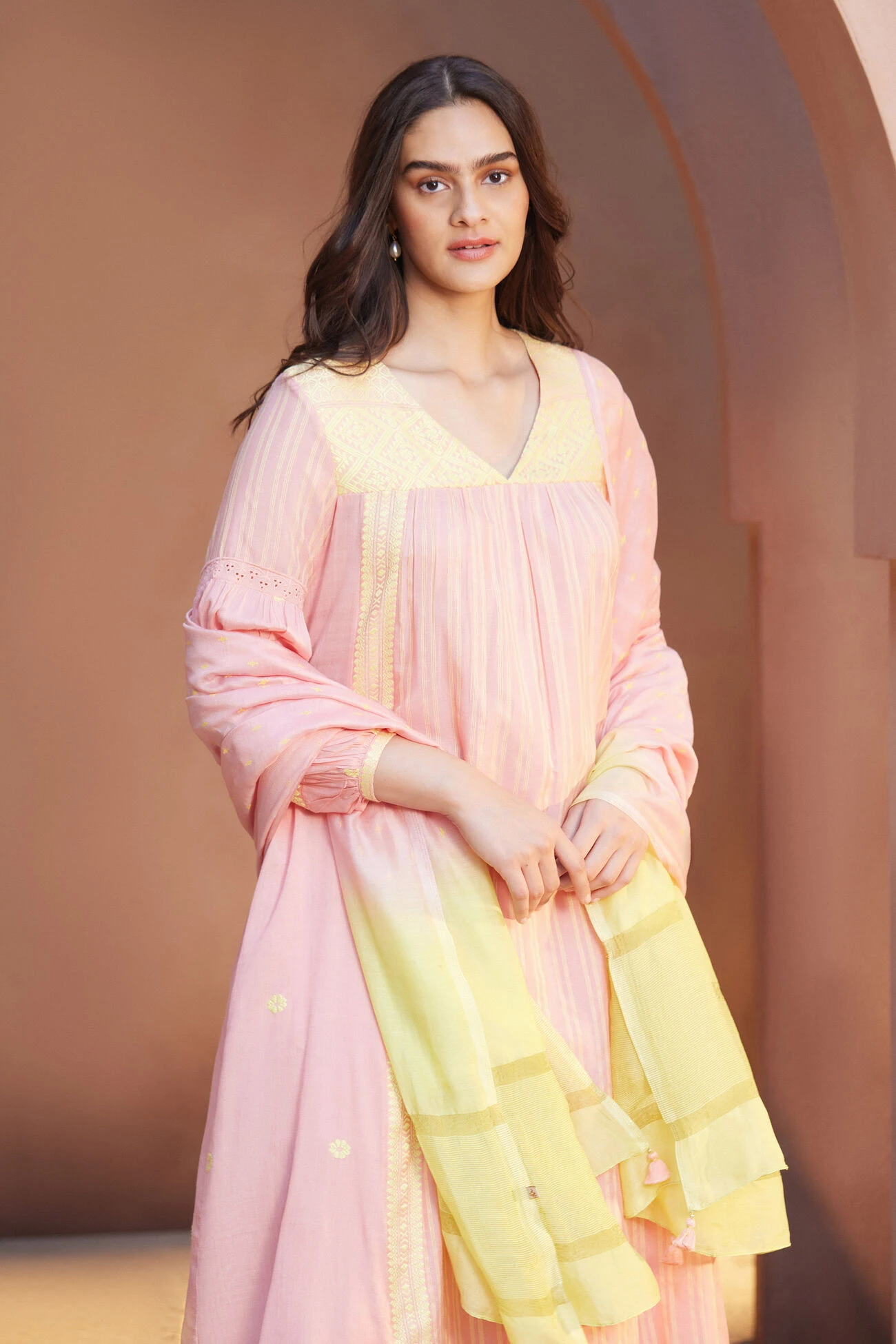 Woven by hand, the Aasin suit set is crafted in Assam. Women artisans meticulously created this elegant and super soft ensemble.