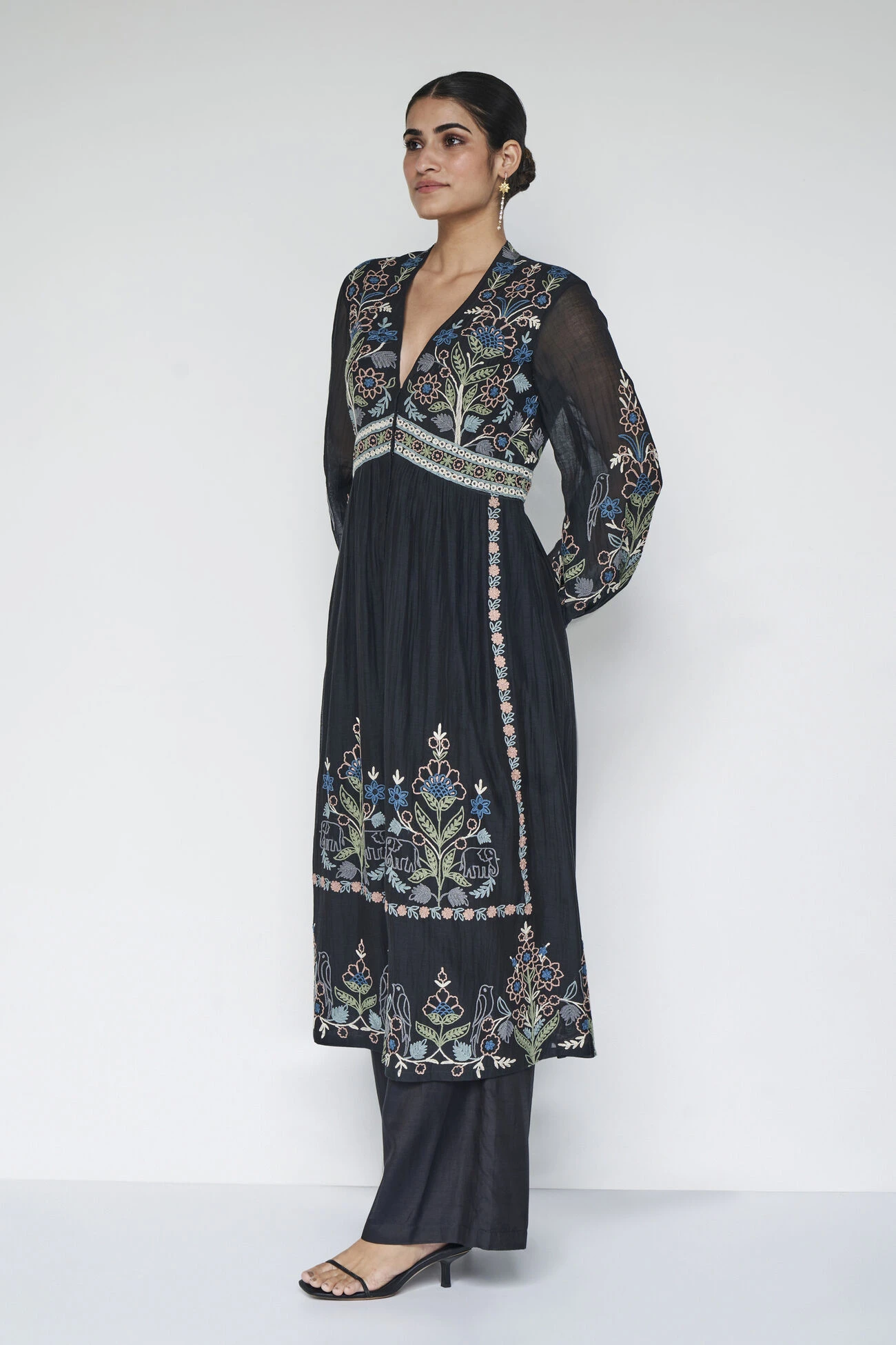Elevate your festive look with this elegant suit set. Crafted in a deliciously soft fabric with handcrafted embroidery details.