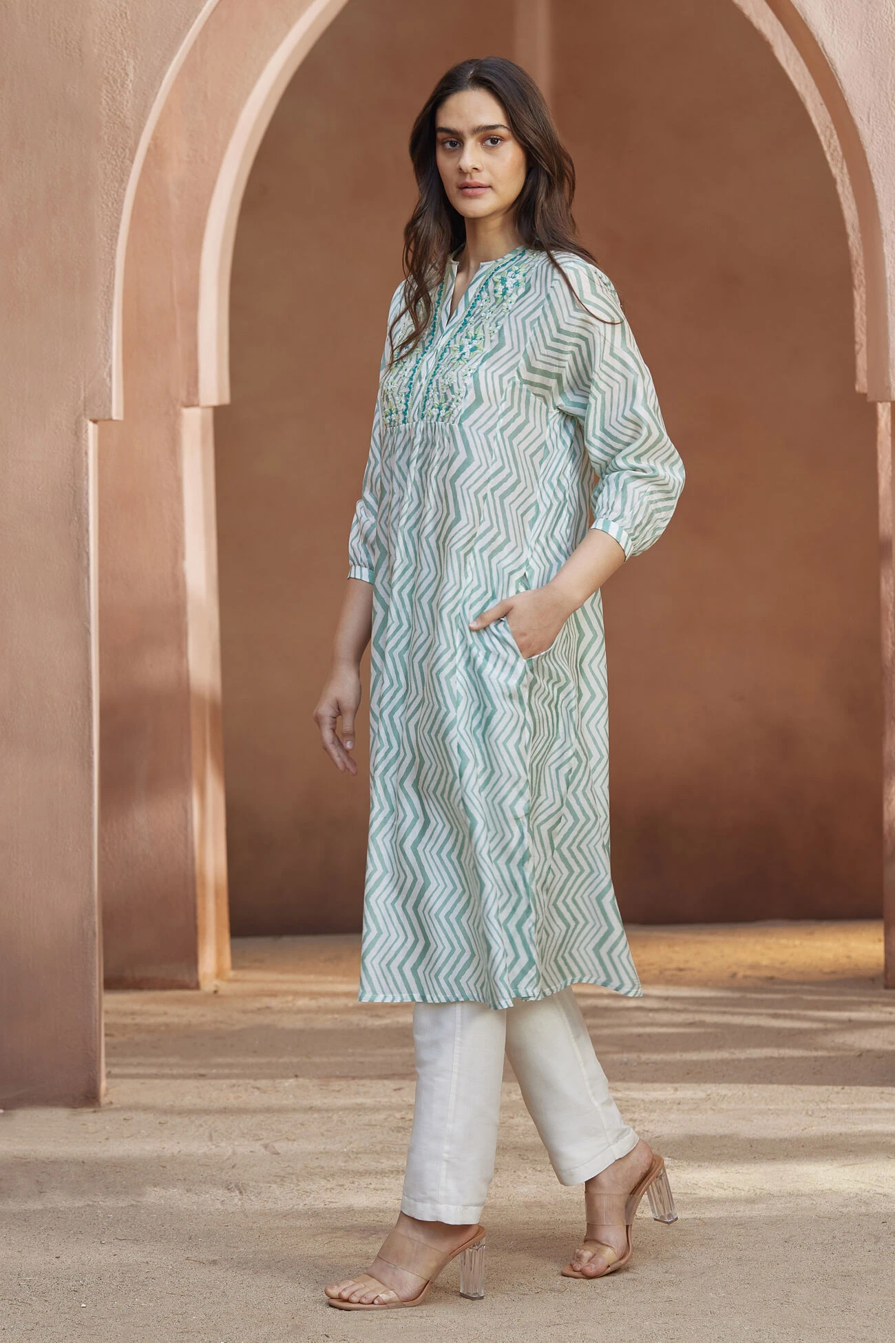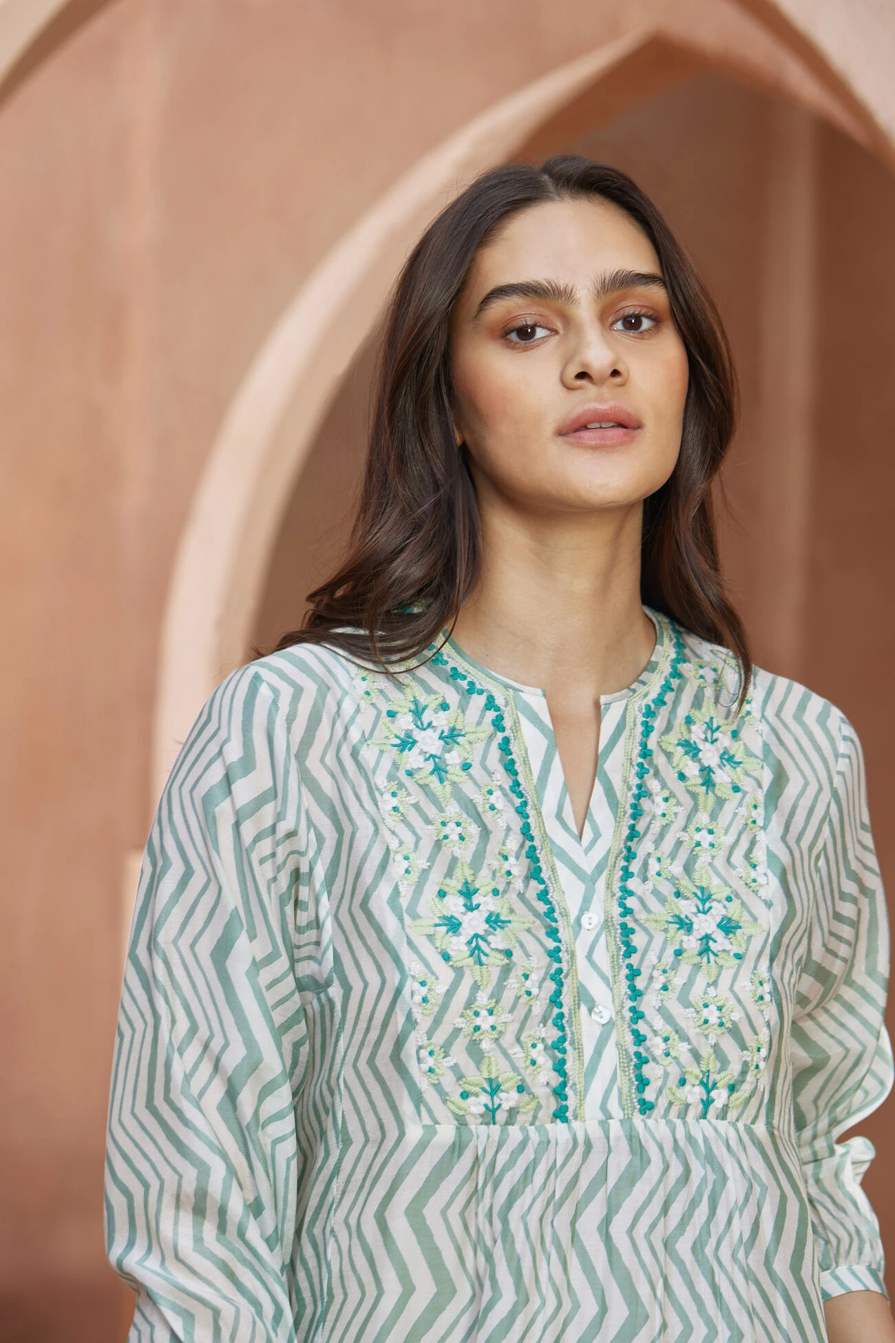 An eclectic kurta that is perfect for everyday activities. Light-as-air and can be worn in myriad ways.