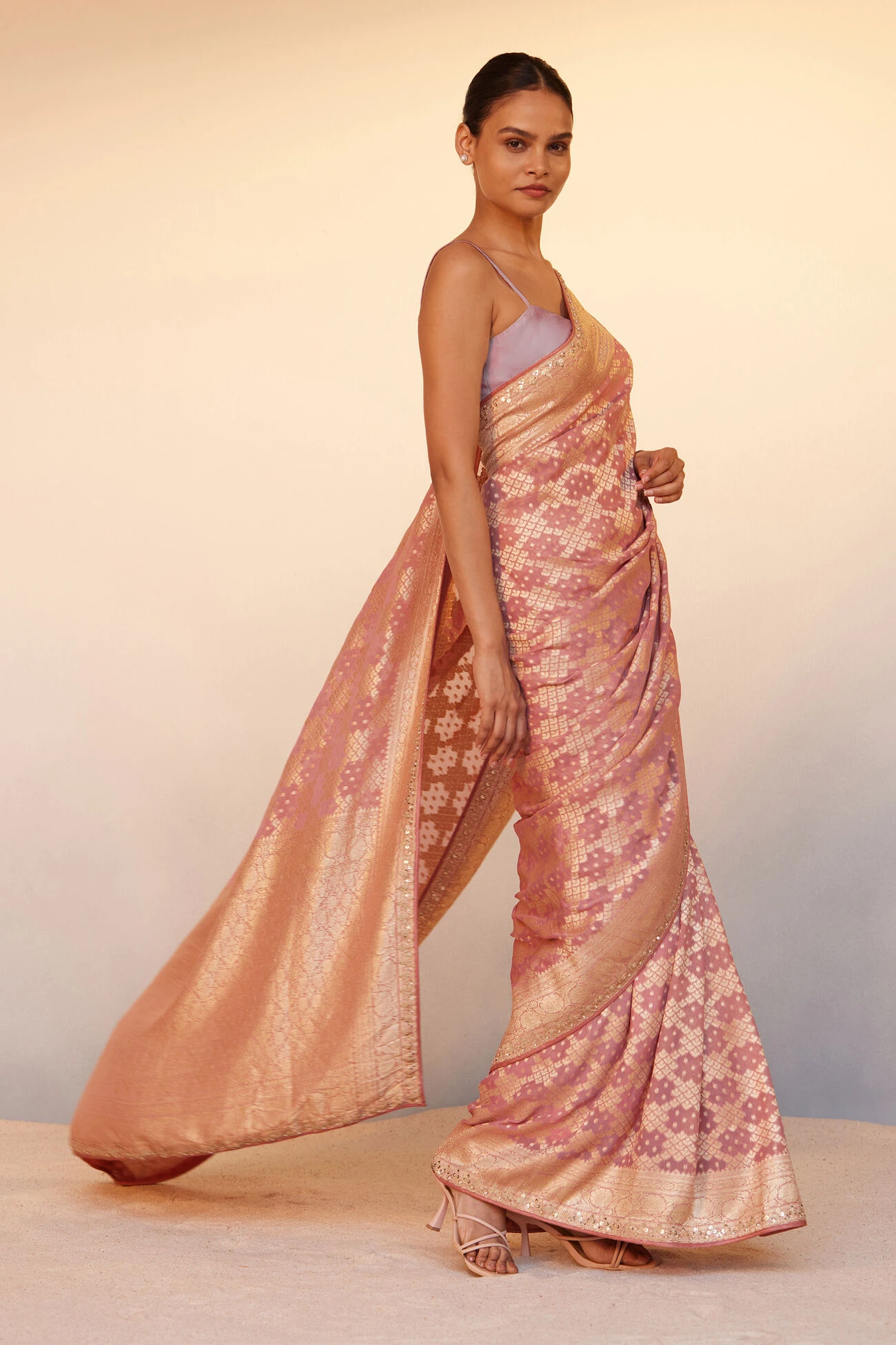 Gul is a beautiful blush saree that is handwoven in Benaras by master artisans. Perfect to make a statement at glamorous soirees.
