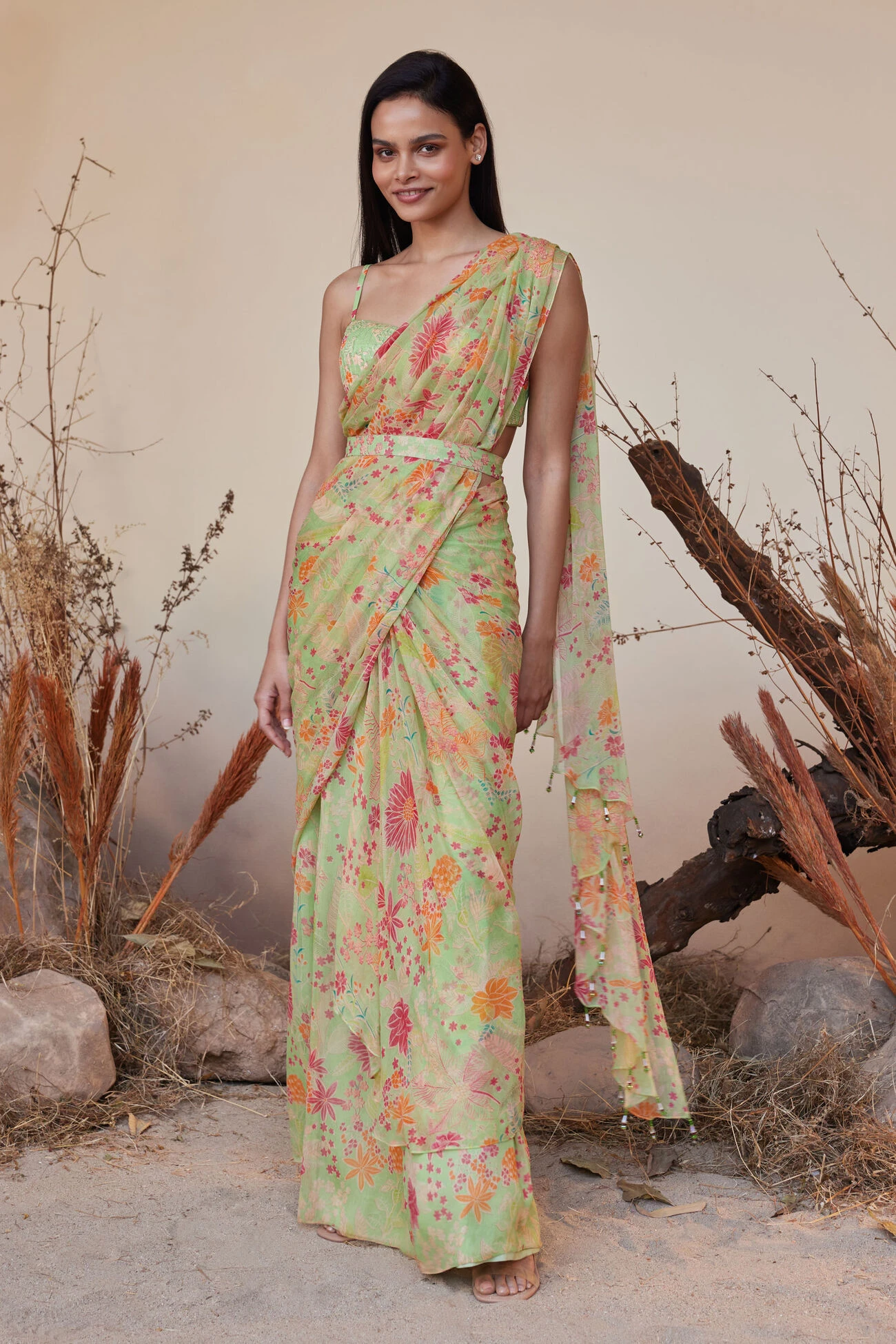 Abounding in multi-hued floral prints, Juliette is a must-have. Wrap yourself in this breezy and timeless drape for daytime soirees.