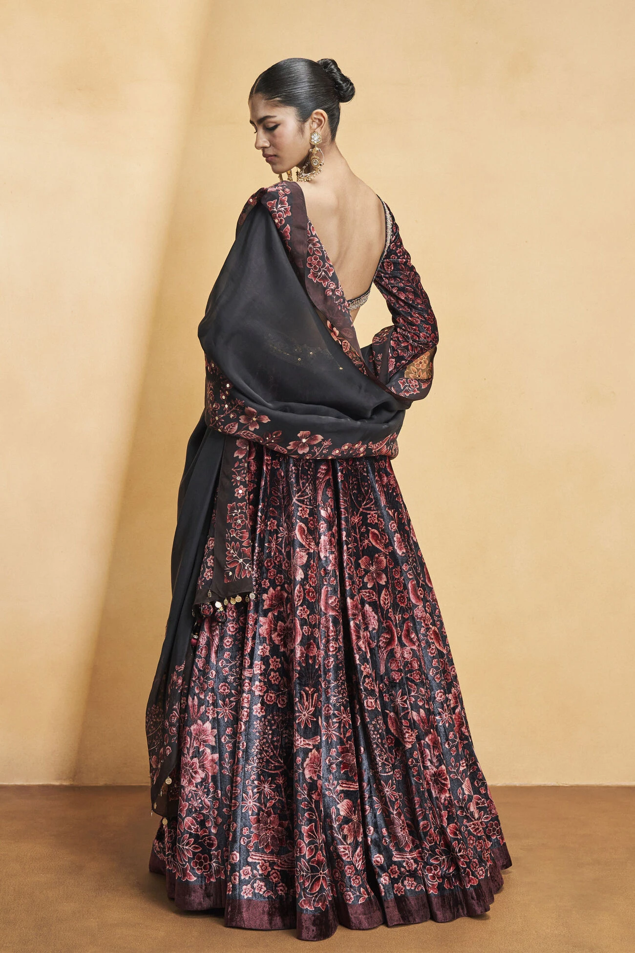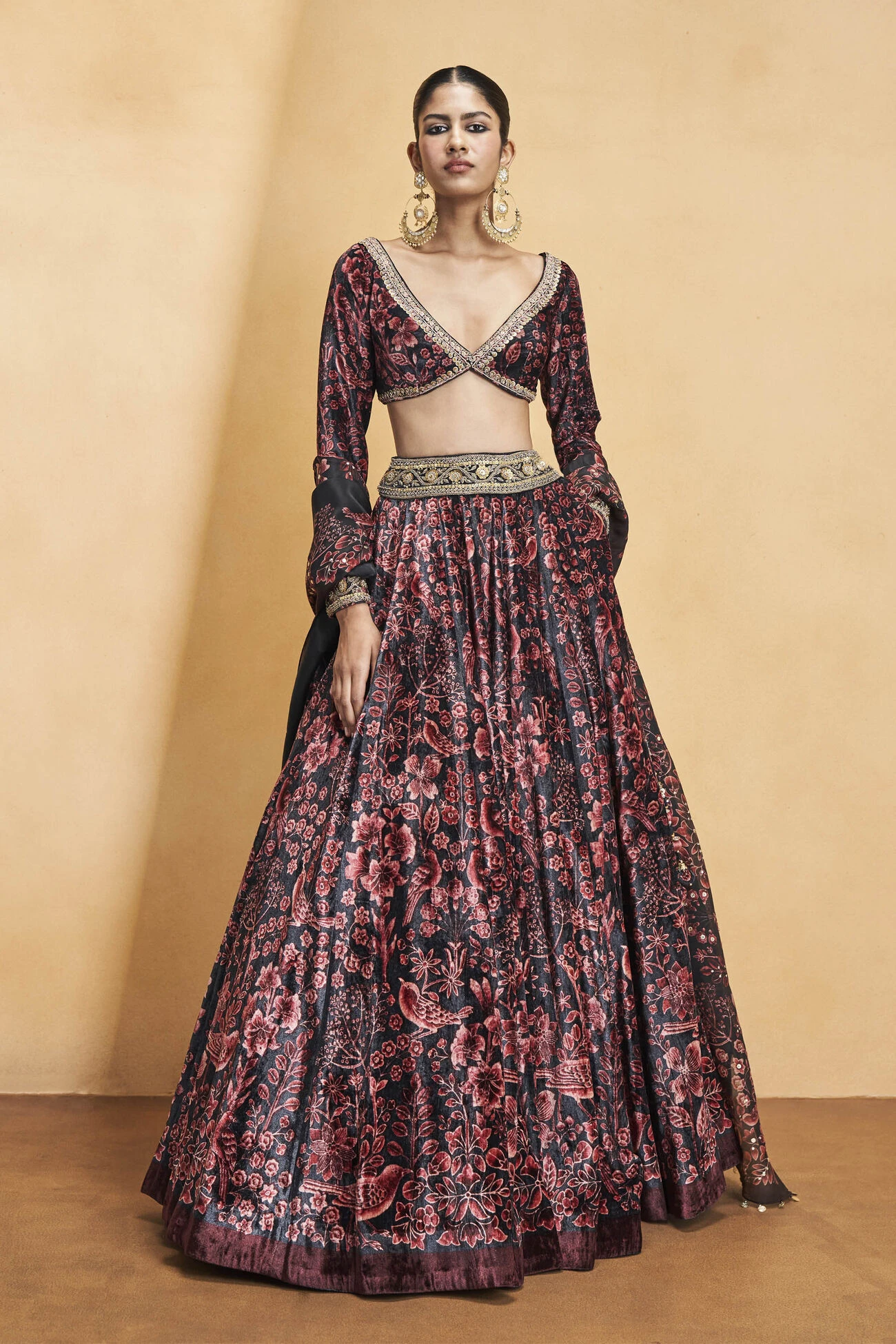 Inspired by a night-time garden abounding in lush florals, Melisande is perfect for winter celebrations. Meticulously handcrafted in zari and thread embroidery for a glamorous look.