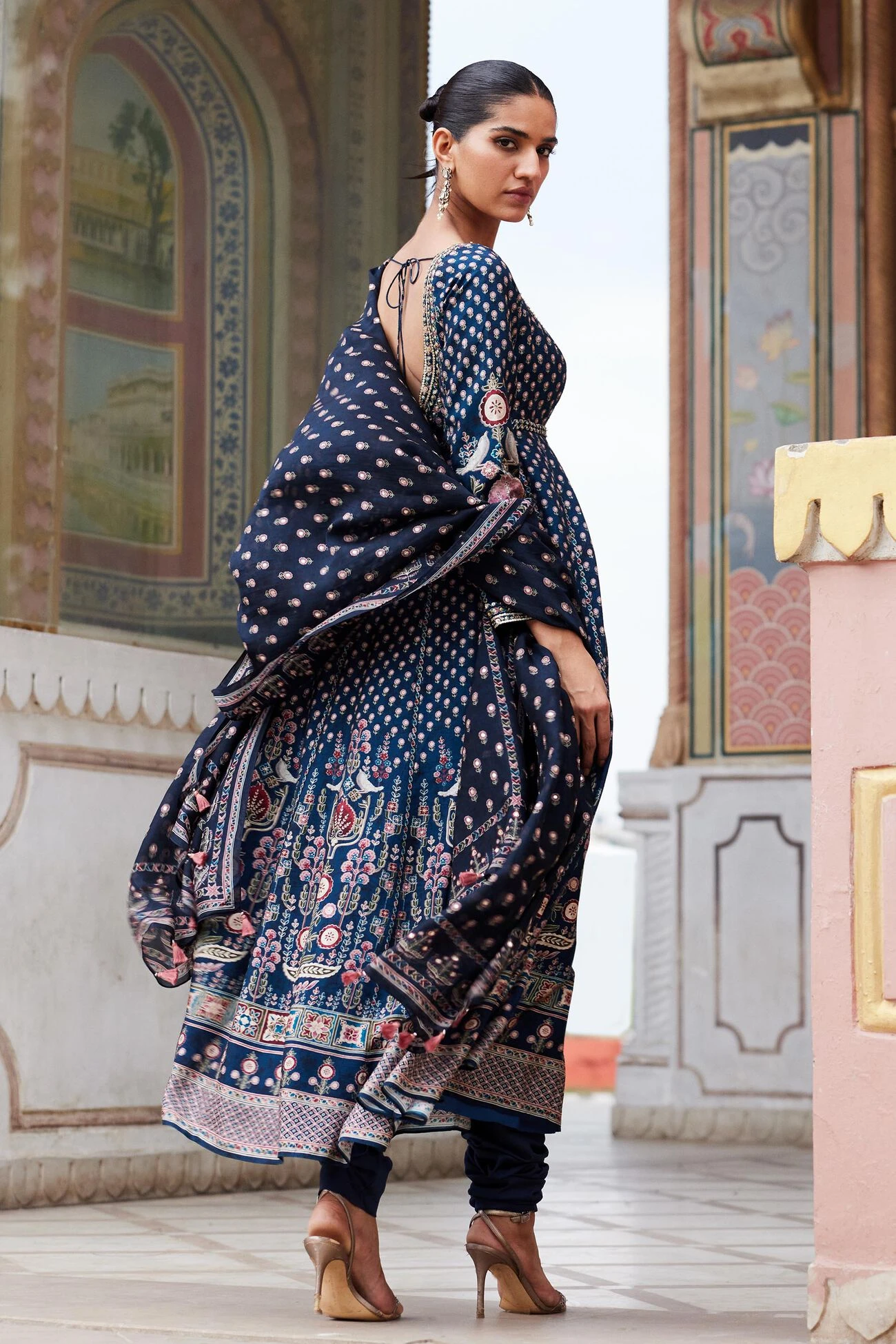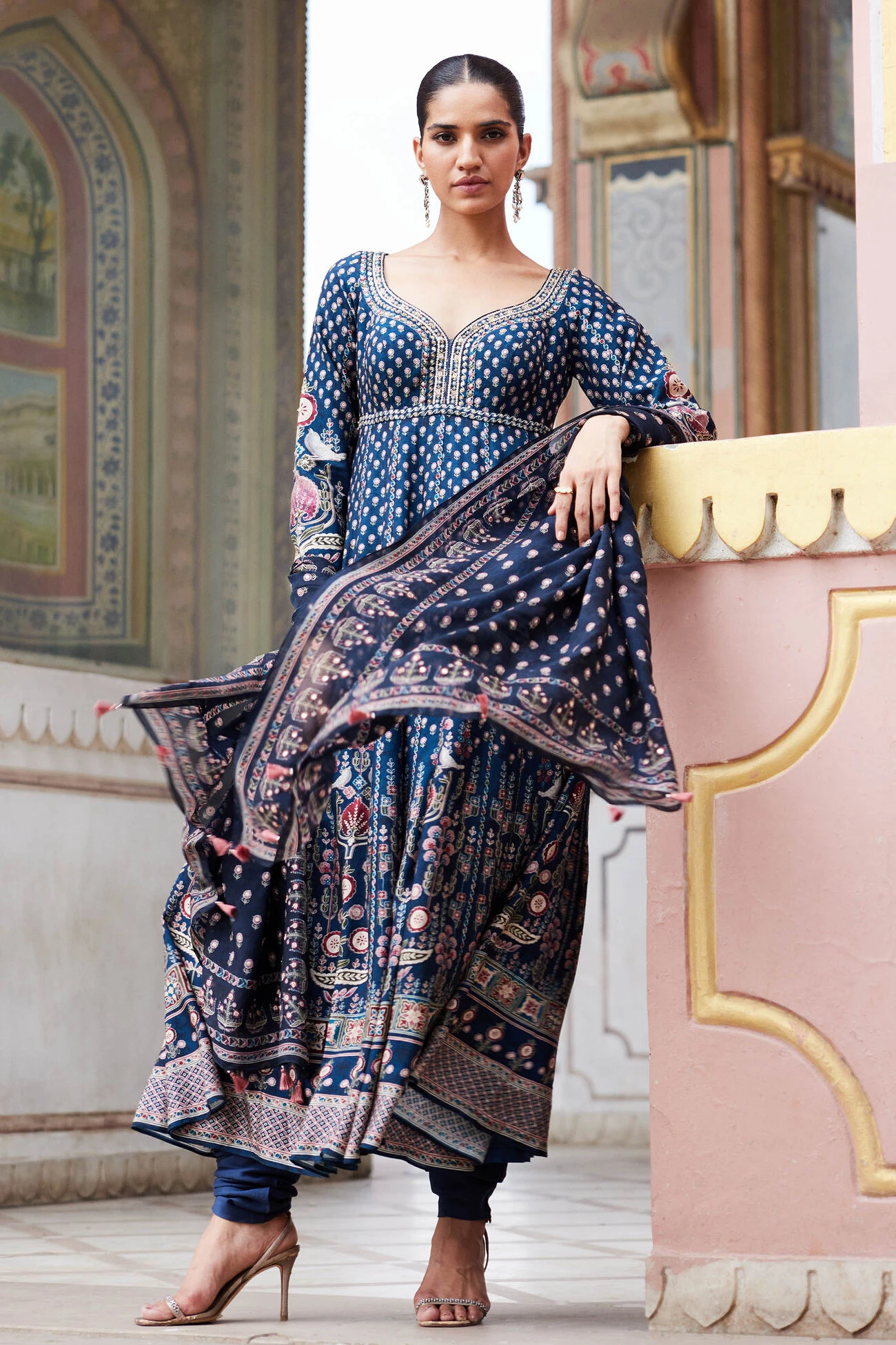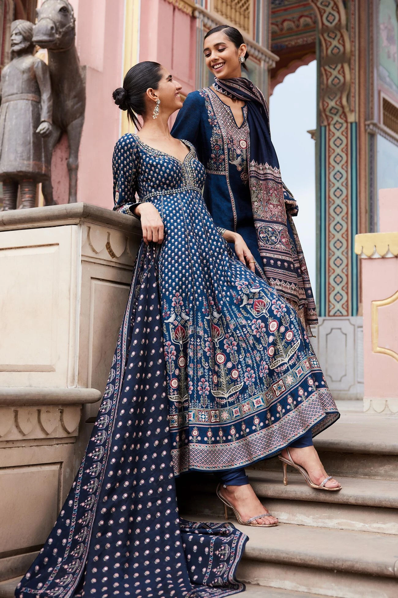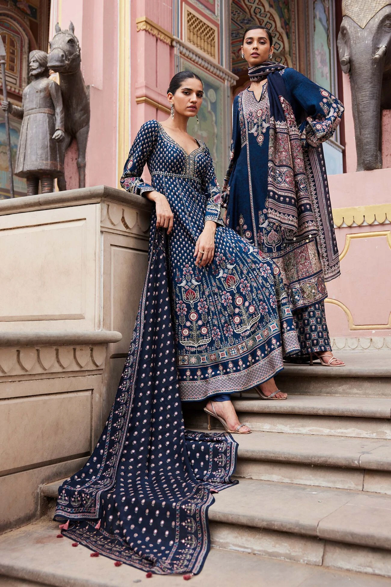 Dive into the season of celebrations with Naima. Featuring palatial motifs and garden-esque blooms in a gleaming silhouette.