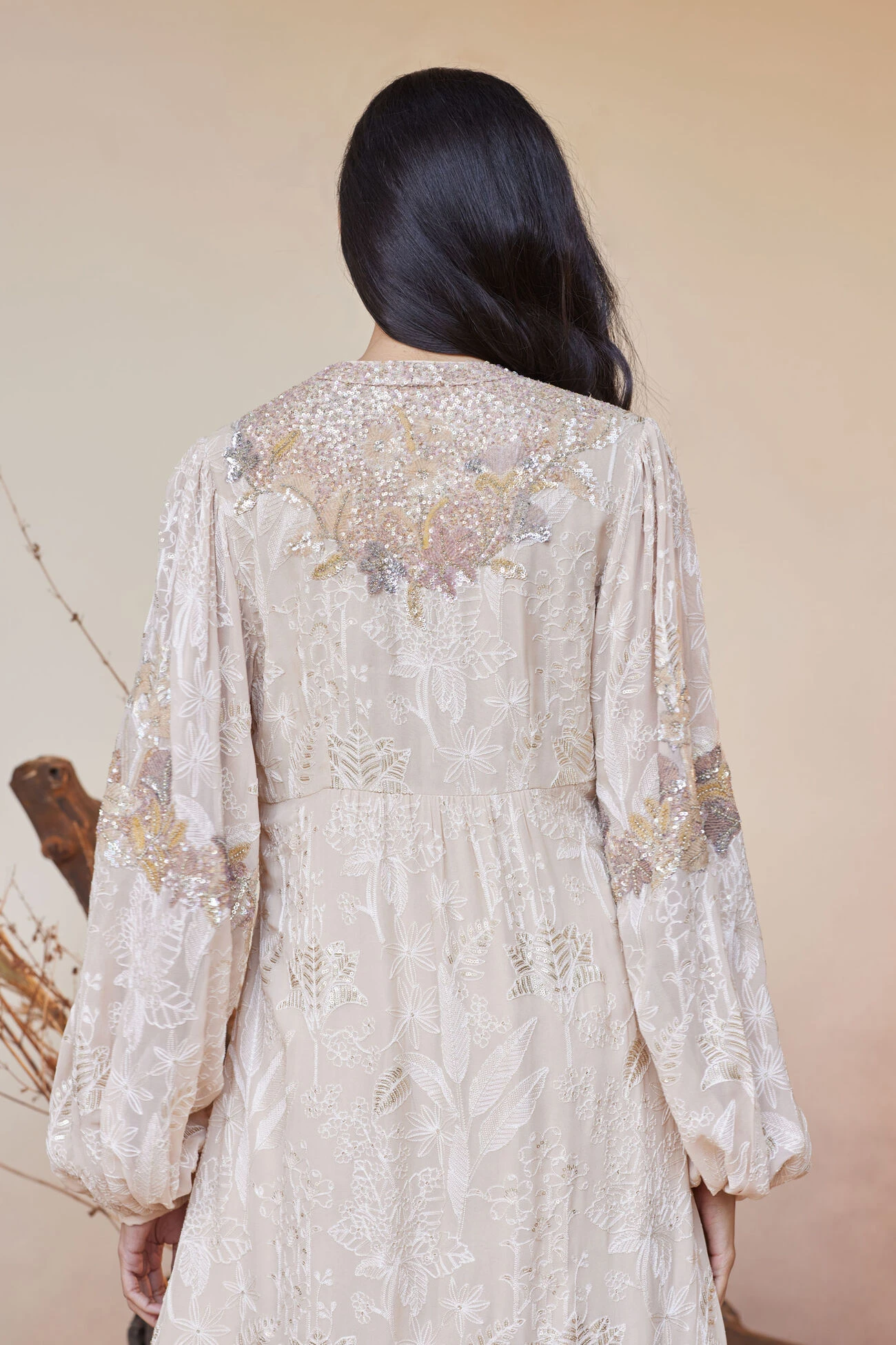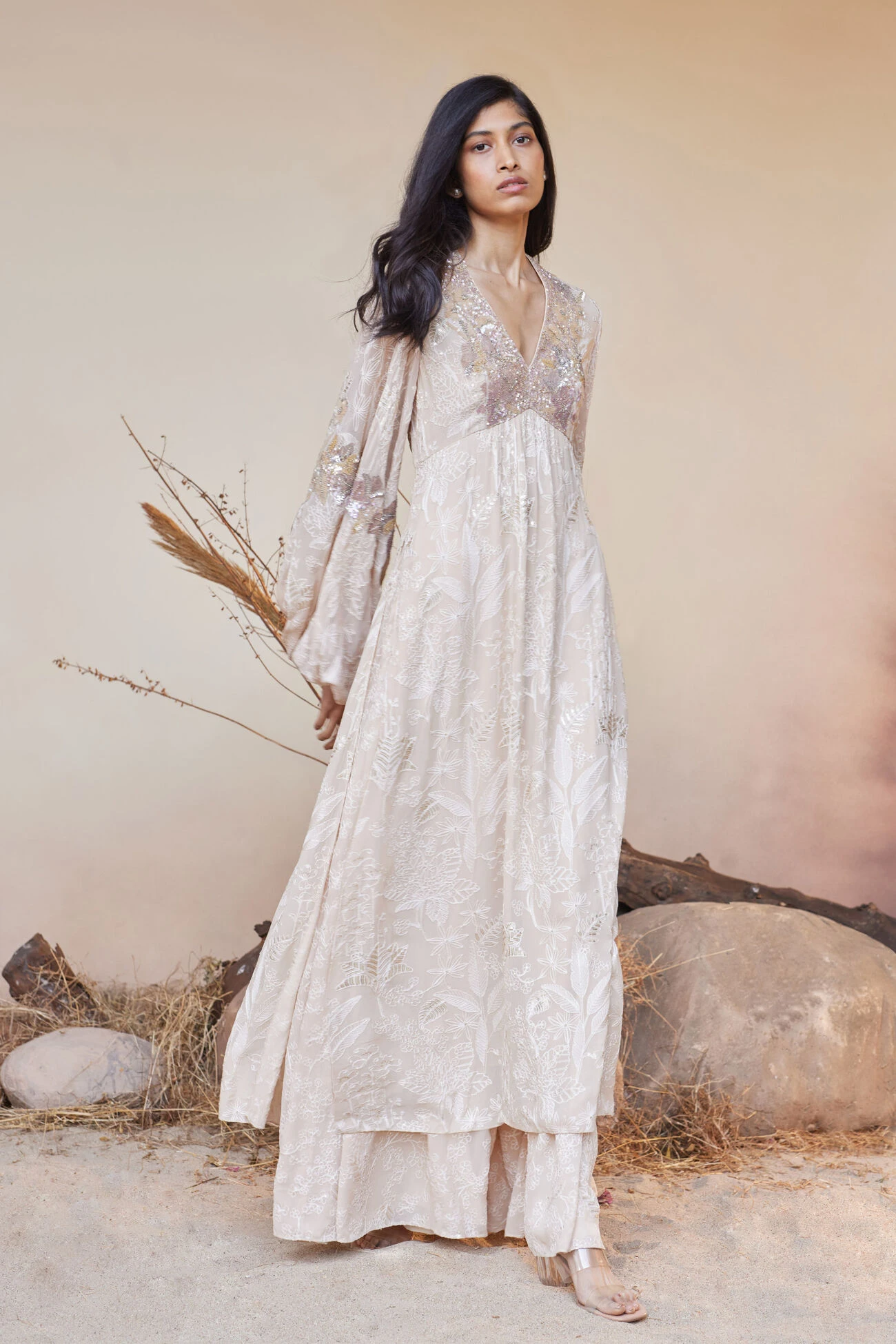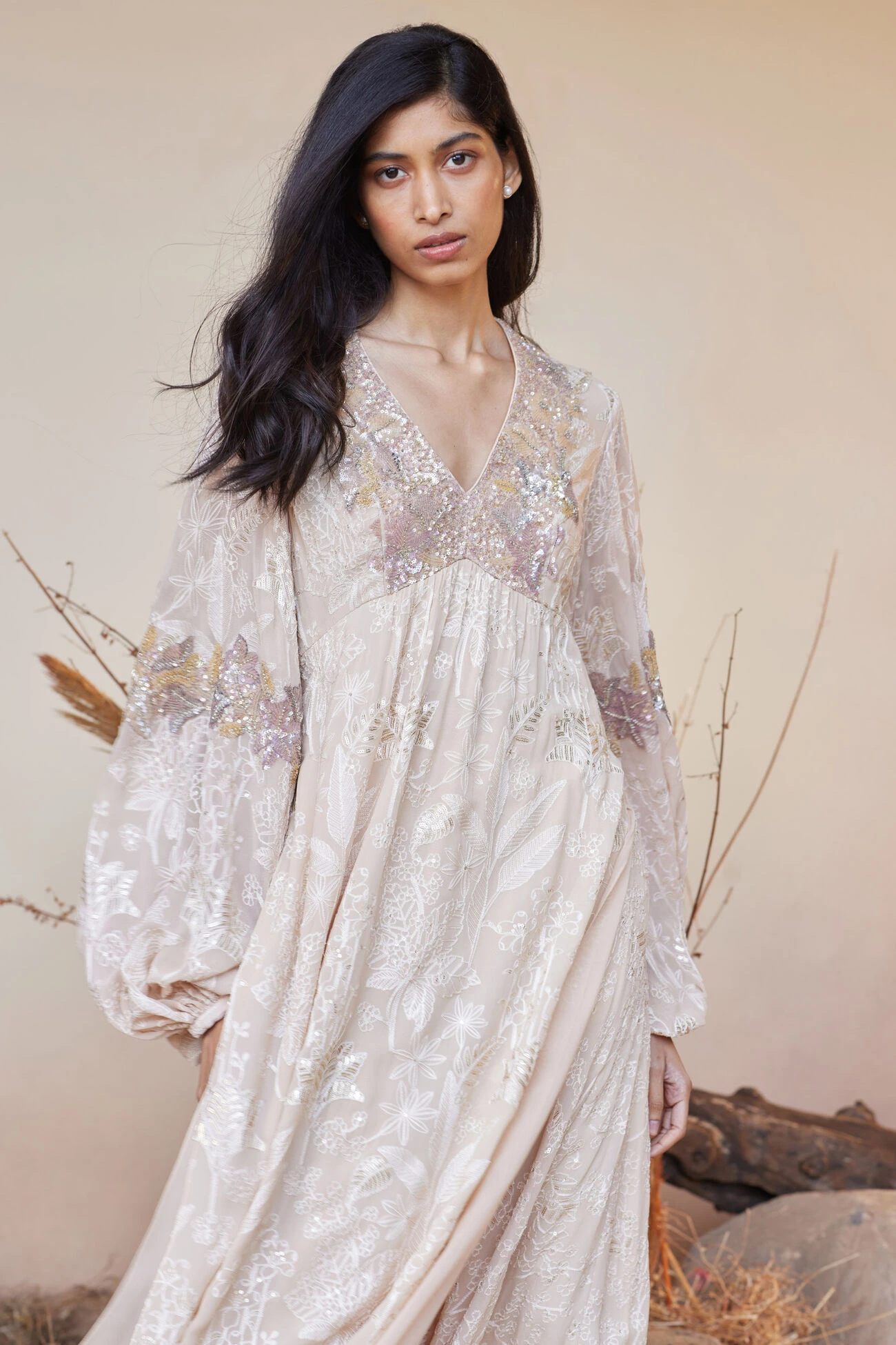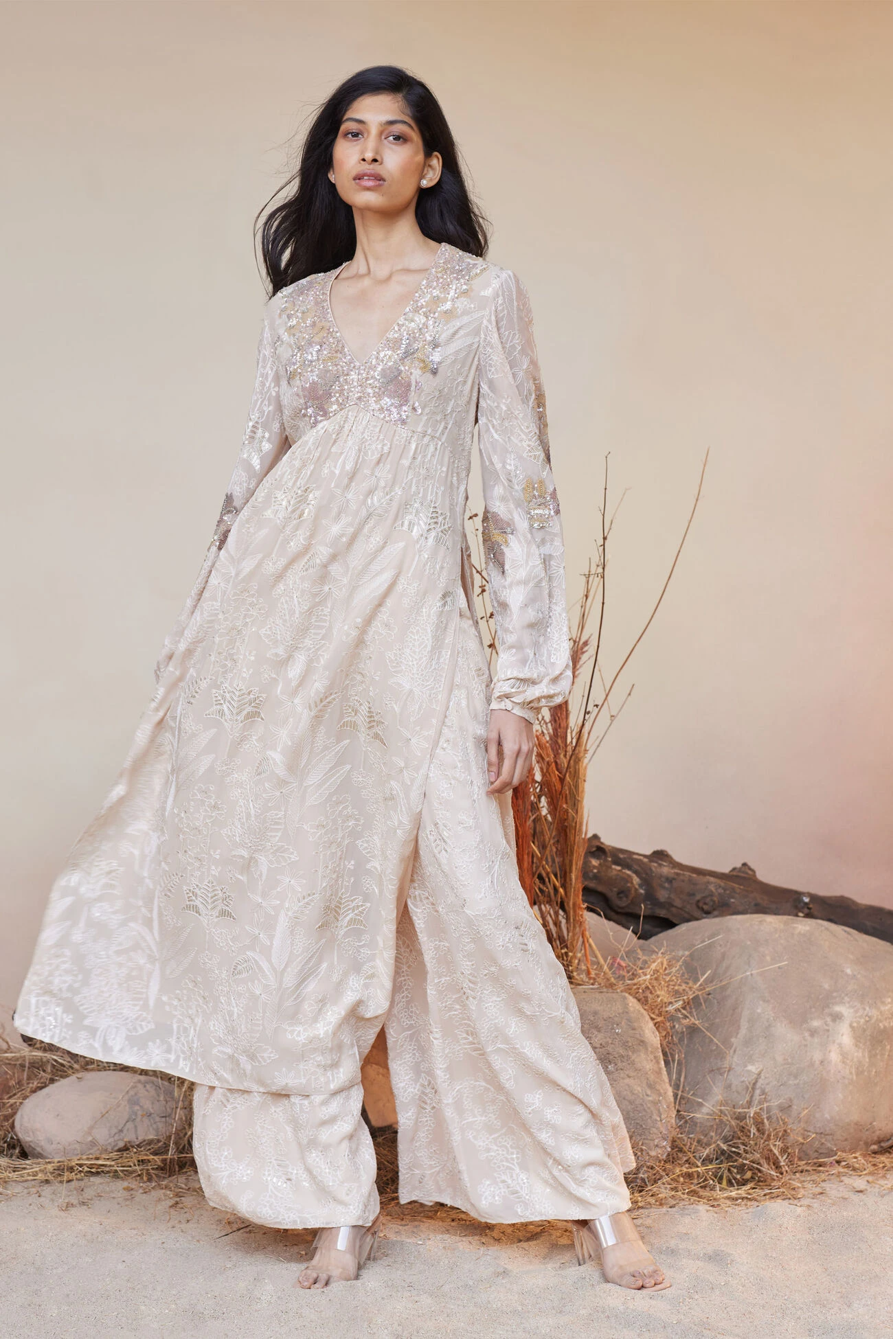 Gleaming details blend with an enchanting color to make Sahara a glamorous ensemble. Framed in a silhouette inspired by windswept deserts, it is a contemporary addition to your wardrobe.