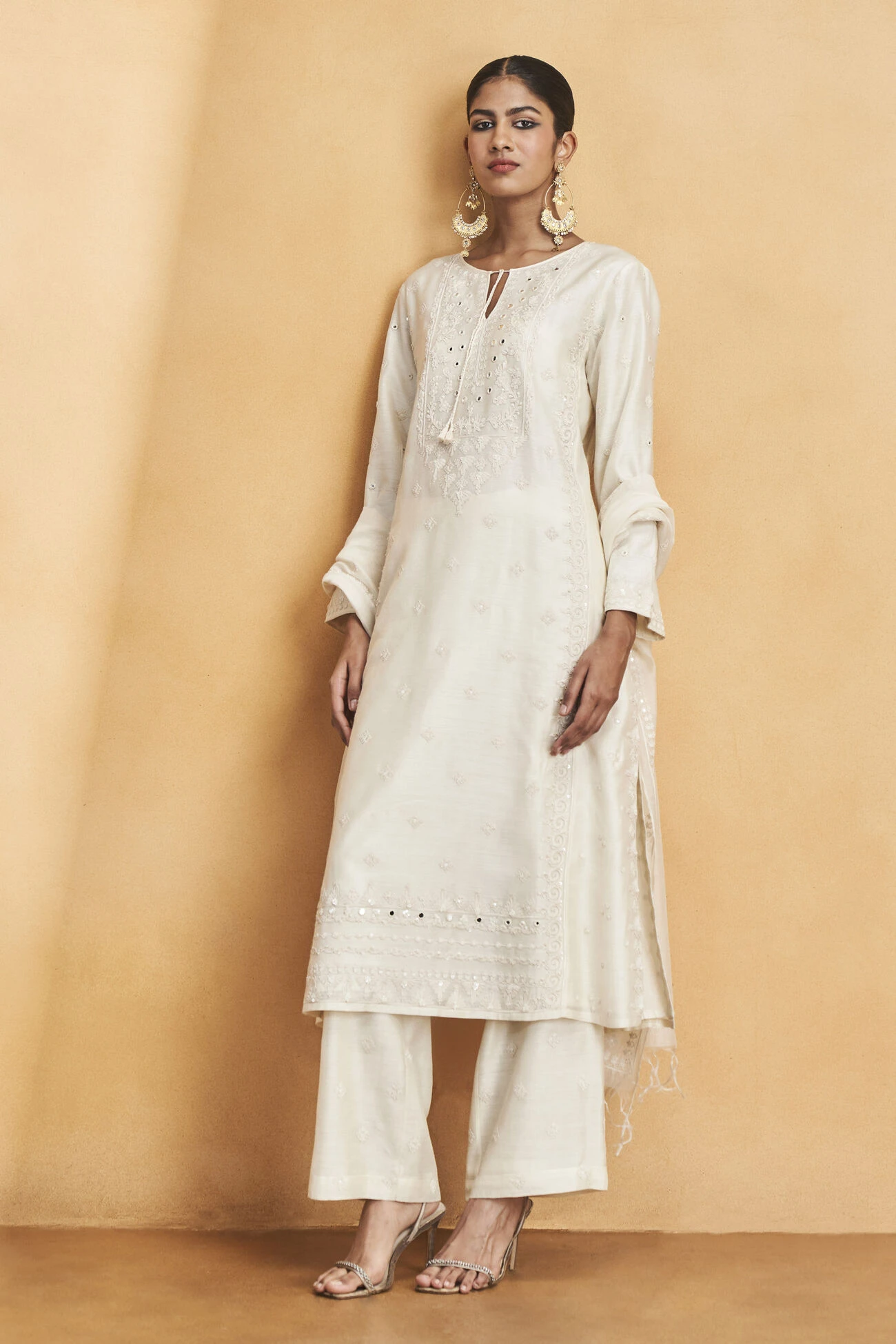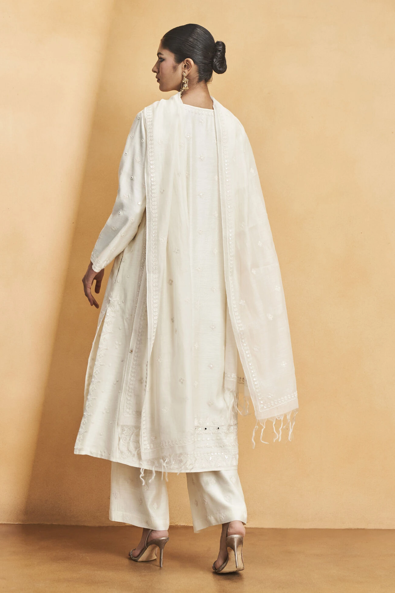 Pristine and elegant, the Samudra suit set is for fuss-free style lovers. Highlighted with thread and sequin embroidery, this subtle occasionwear is perfect for daytime celebrations.